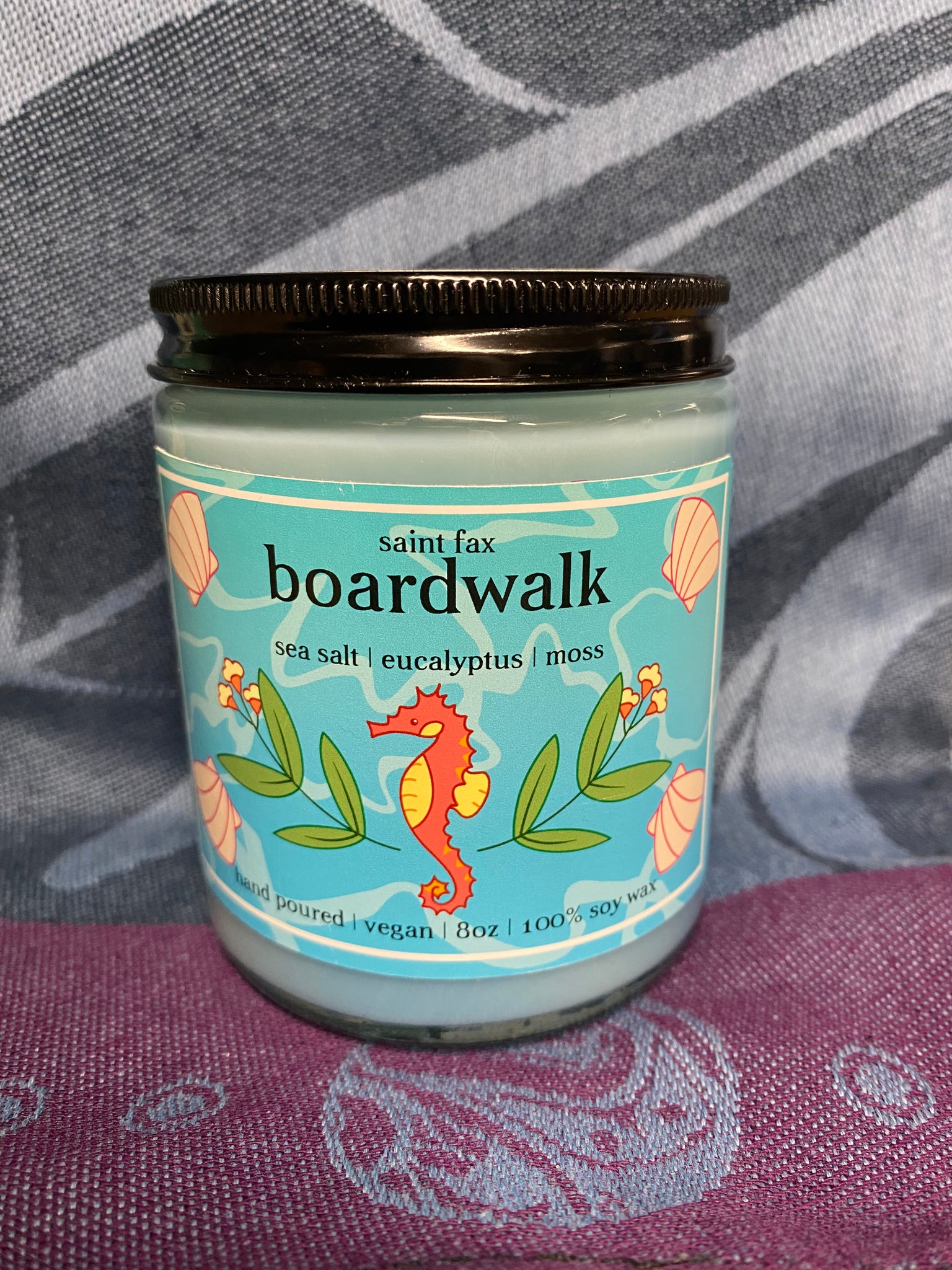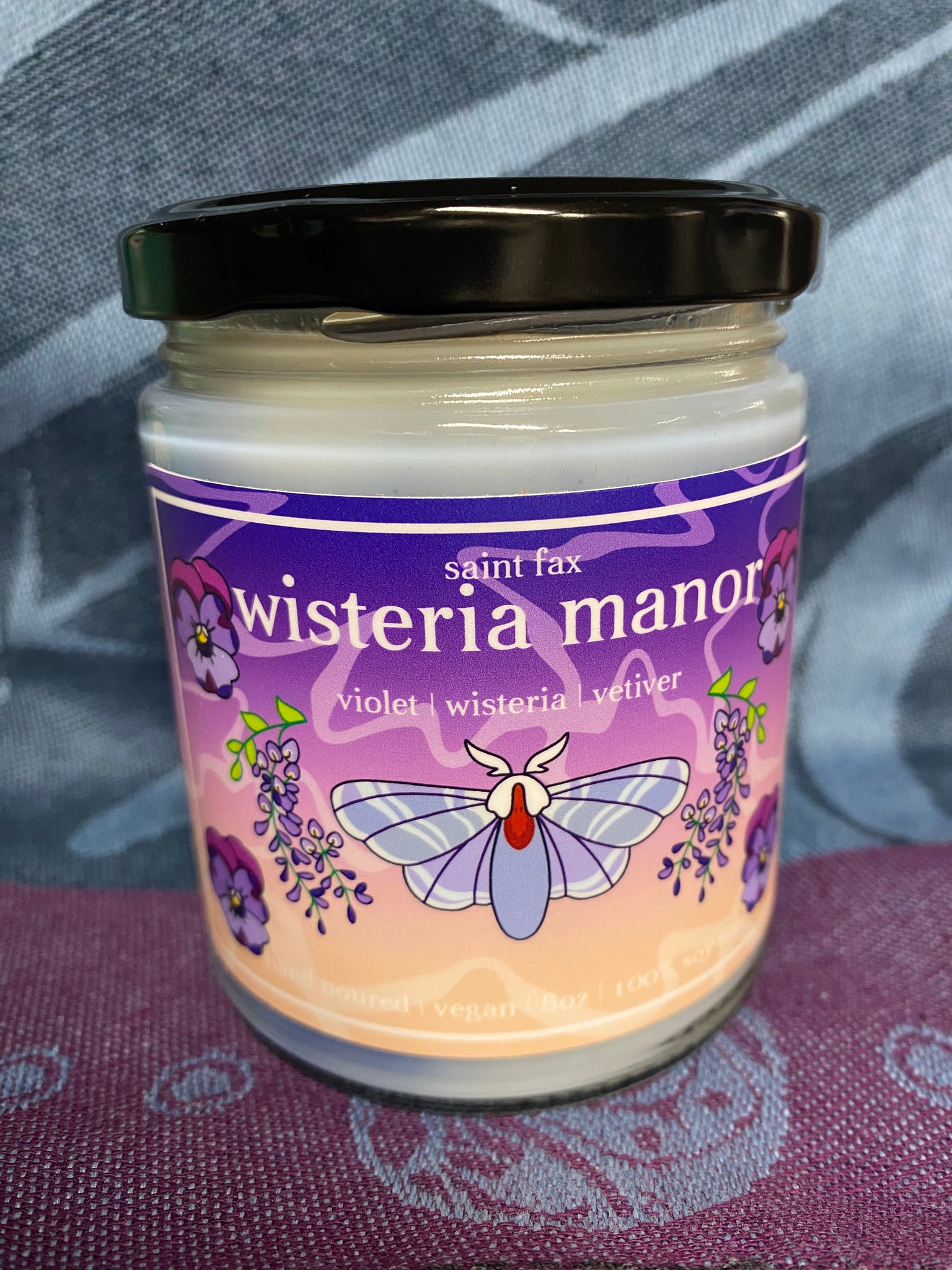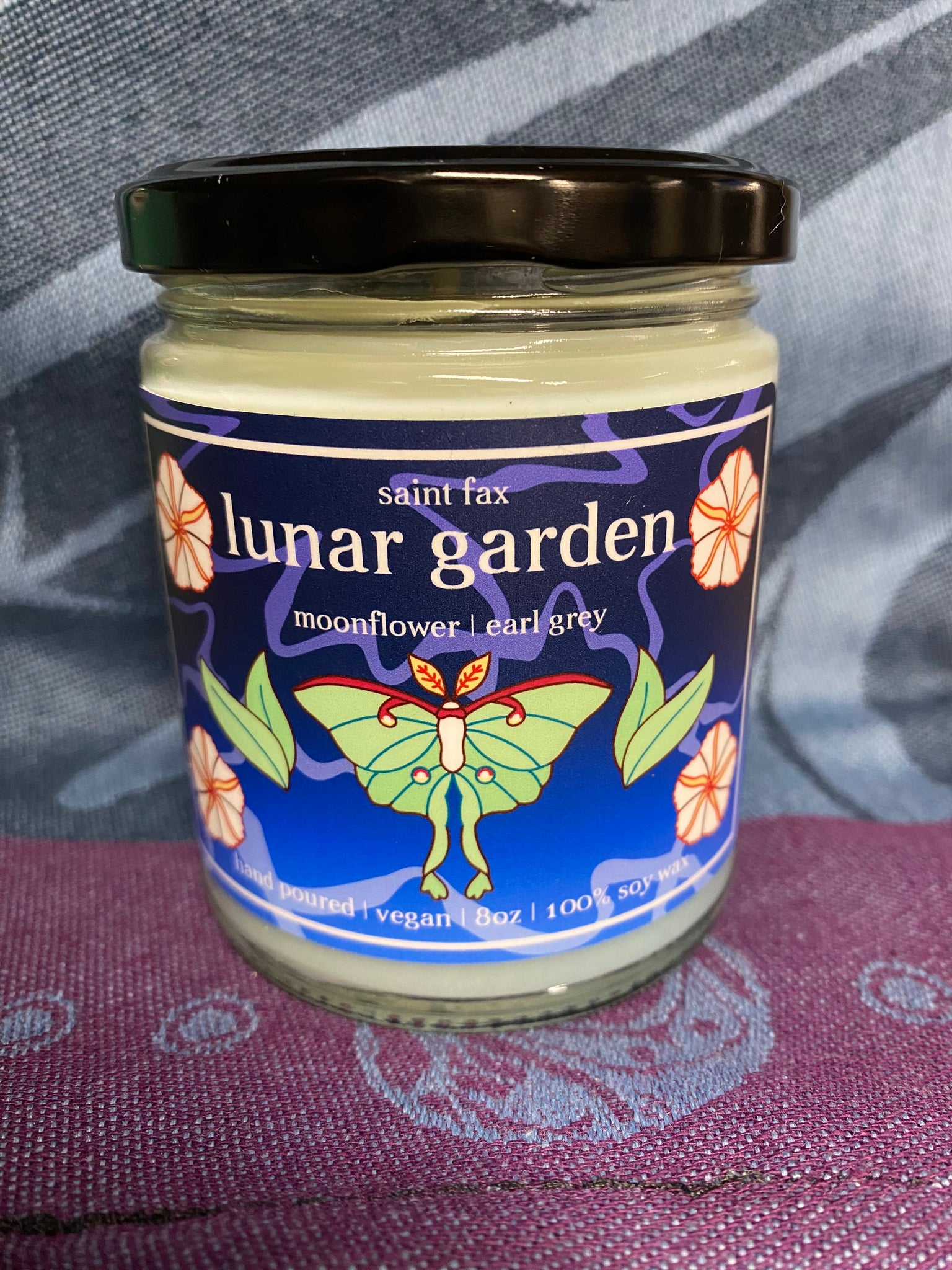 These 100% soy wax candles are eco-friendly, hand poured, and feature artwork by Saint Fax.